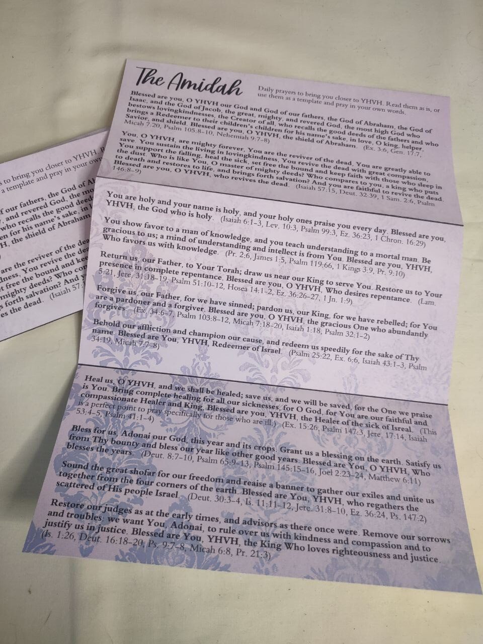 This set of five softly designed prayer cards features the Amidah with carefully paired Scripture references, thoughtfully arranged for daily use. Each card measures 7.5 x 10.5 inches and folds neatly to fit inside your Bible, making it easy to keep these blessings close at hand.